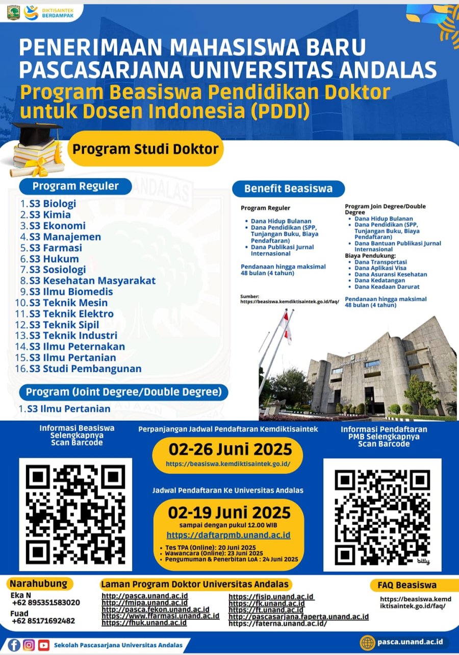Sebagai salah satu perguruan tinggi negeri yang terus berupaya meningkatkan mutu akademiknya, Universitas Andalas sangat menyambut baik program ini. Diharapkan banyak dosen Unand dapat merebut peluang beasiswa PDDI Batch 3 ini sebagai langkah nyata dalam meningkatkan jumlah dosen bergelar doktor dan memperkuat kualitas tridarma perguruan tinggi.