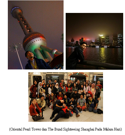 Provinsi ketiga yaitu Shanghai tanggal 29 - 30 September 2016 merupakan provinsi terakhir country program sesampai di Bandara International Pudong Shanghai kami langsung menuju Menara TV & Radio Mutiara Oriental dan Museum Perkembangan Sejarah Kota Shanghai (Oriental Pearl Tower). Menara ini berada di Pudong Park di Lujiazui, Shanghai. Waktu singkat di Shanghai dimanfaatkan sebaiknya untuk menikmati suasana gemerlap kota Shanghai dimalam hari bentuk perpaduan arsitektur bangunan Eropa dan budaya Asia Timur yang membuat rindu untuk kembali.