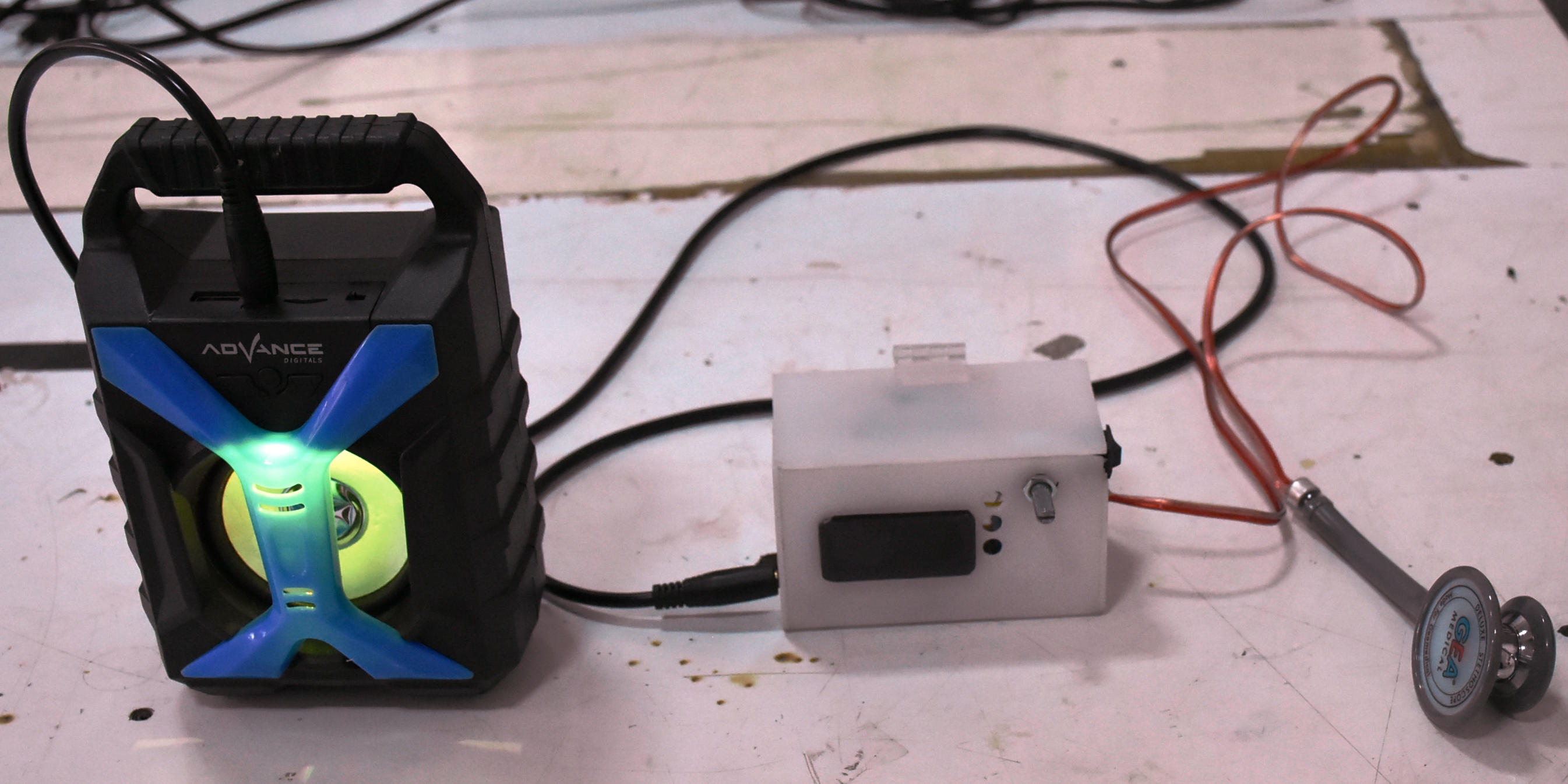 Alat ini digunakan untuk mendengarkan detak jantung pasien yang bisa didengarkan melalui headphone atau speaker. Kondisi pandemi ini mengharuskan tenaga medis untuk menggunakan APD sehingga tidak memungkinkan untuk menggunakan stetoscop biasa. Disinilah peran stetoscop digital sebagai inovasi dimasa pandemi. Peralatan Biomedik ini juga dikembangkan oleh Dr. Eng. Muhammad Ilhamdi Rusydi.