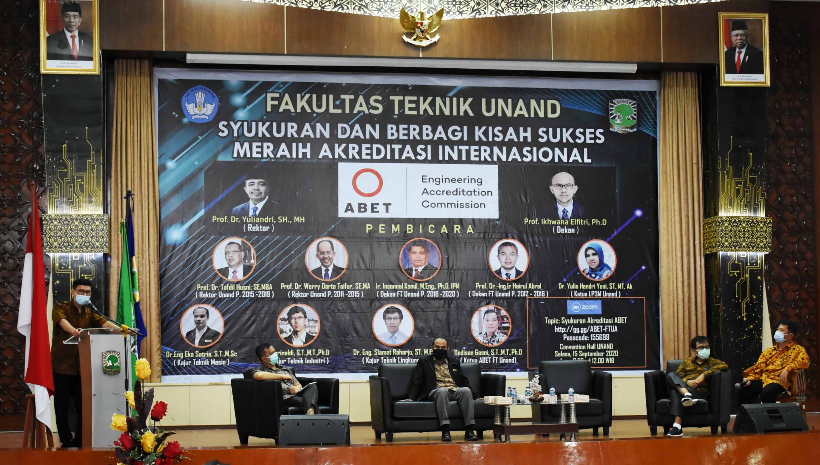 Dekan Fakultas Teknik Universitas Andalas (Prof. Ikhwana Elfitri, Ph.D) menyampaikan dalam sambutannya, ada 3 tujuan diadakannya acara ini. Pertama sebagai wujud rasa syukur atas raihan akreditasi internasional ini dan sebagai ungkapan terima kasih atas bantuan dari berbagai pihak, termasuk dari Pimpinan Universitas Andalas, Lembaga Pengembangan Pendidikan dan Penjaminan Mutu (LP3M), Lembaga Pengembangan Teknologi Informasi dan Komunikasi (LPTIK), Pusat Bahasa, Mahasiswa, Alumni dan semua stake holders Universitas Andalas.