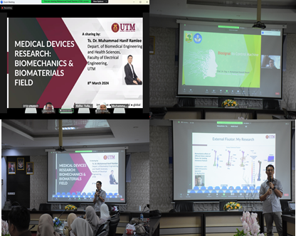Kegiatan pengabdian kerjasama International dengan UTM ini dibuka oleh Dekan Fakultas Teknik Universitas Andalas, dalam hal ini diwakili oleh Wakil Dekan II, Dr.Eng. Eka Satria, Kemudian dilanjutkan dengan talk session yang dimoderatori oleh Manajer Pendidikan dan Kemahasiswaan, Dr. Eng. Dendi Adi Saputra. Talk Session sesi I “Medical Devices” disampaikan oleh Dr. Muhammad Hanif bin Ramlee (UTM) dan dilanjutkan dengan talk session 2 “Implementation Biosignal for Assistive Technology” oleh Prof. Dr. Eng. Muhammad Ilhamdi Rusydi dan dilanjutkan dengan sesi tanyajawab. Kemudian penyerahan cendramata antara Universiti Teknologi Malaysia (UTM) dan Fakultas Teknik Unand dan dilanjutkan dengan sesi foto bersama. Kegiatan berikutnya dilanjutkan dengan kunjungan ke Laboratorium Departemen Teknik Elektro Unand, dan diakhiri dengan penyampaian “3D scanning dan design workshop” antara mahasiswa UTM dan mahasiswa Fakultas Teknik Unand.