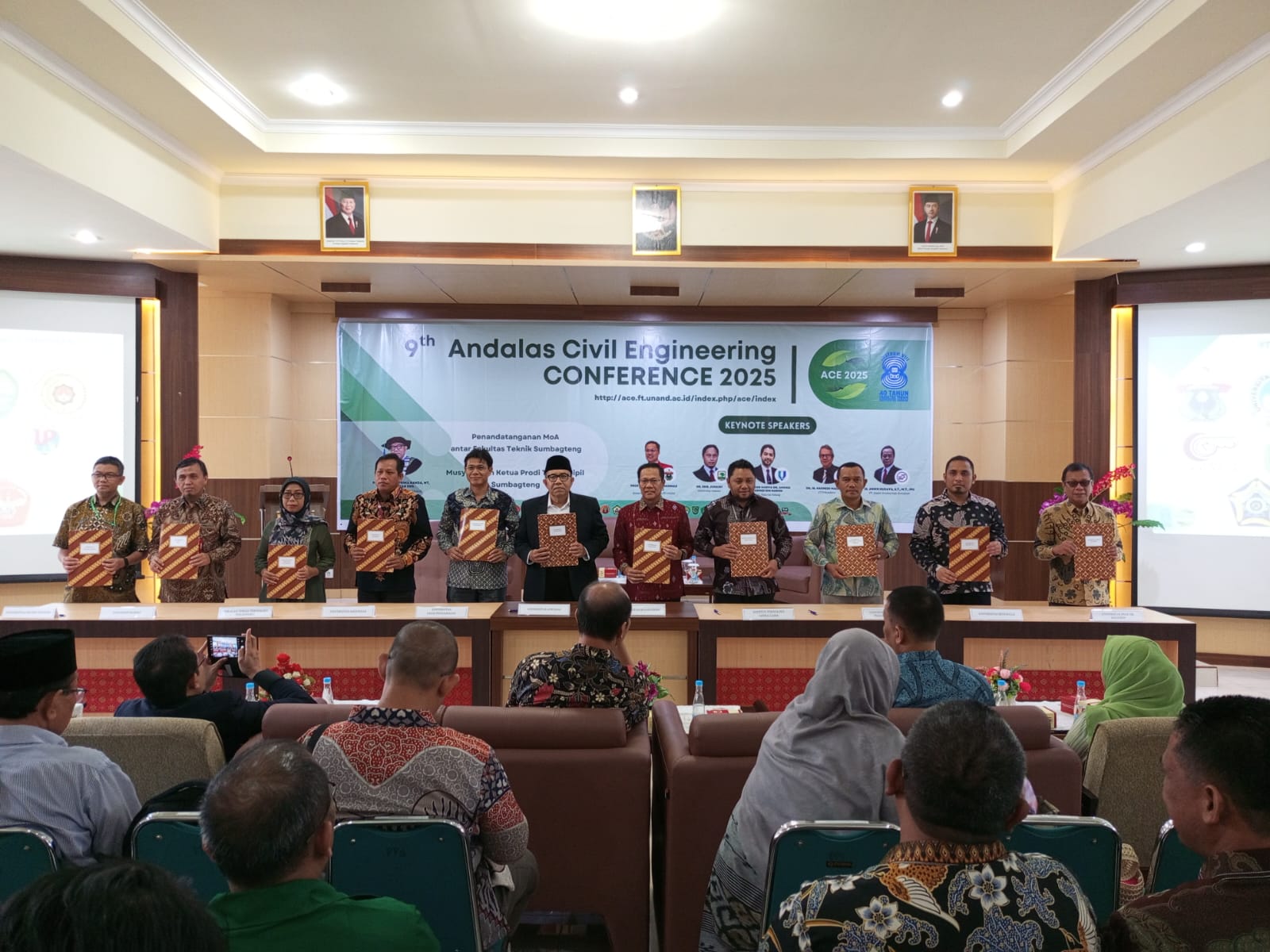 Sebagai bagian dari agenda utama, dilaksanakan penandatanganan Momerandum of Agreement (MOA) antar Dekan Fakultas Teknik Universitas/Institut/Sekolah Tinggi se-Sumatera Bagian Tengah bersama Dekan Fakultas Teknik Universitas Hasanuddin selaku Ketua Badan Musyawarah Perguruan Tinggi Teknik Sipil Seluruh Indonesia (BMPTTSSI) yang melibatkan jejaring kerjasama dari 30 Program Studi Teknik Sipil se-Sumatera Bagian Tengah (Sumbagteng) yaitu: Universitas Andalas (Host), Universitas Negeri Padang, Politeknik Negeri Padang, Universitas Dharma Andalas, Universitas Adzkia, Institut Teknologi Padang, Universitas Bung Hatta, Universitas Putra Indonesia “YPTK”, Sekolah Tinggi Teknologi Payakumbuh, Universitas Muhammadiyah Sumatera Barat, Universitas Ekasakti, Universitas Riau, Universitas Islam Riau, Universitas Lancang Kuning, Universitas Abdurrab, Universitas Jambi, Sekolah Tinggi Teknologi Pekanbaru, Universitas Pasir Pengaraian, Universitas Islam Kuantan Sengingi, Universitas Pahlawan Tuanku Tambusai, Bangkinang, Politeknik Bengkalis, Institut Teknologi dan Bisnis Inderagiri, Institut Teknologi Mitra Gama Duri, Universitas Bengkulu, Universitas Prof. Dr. Hazairin, SH, Sekolah Tinggi Ilmu Teknik Trisula, Universitas Internasional Batam, Universitas Batam, Universitas Riau Kepulauan, Universitas Muhammadiyah Bangka Belitung. Penandatanganan ini merupakan simbol komitmen bersama dalam membangun kolaborasi riset, pertukaran keilmuan, dan pengembangan kurikulum yang adaptif terhadap isu-isu aktual, khususnya di bidang rekayasa kebencanaan. Rangkaian kegiatan Seminar ACE 9 Tahun 2025 ini juga akan dilaksanakan Musyawarah Perdana forum “Jejaring Kerjasama Ketua Program Studi Teknik Sipil se-Sumatera Bagian Tengah (Sumbagteng)”.