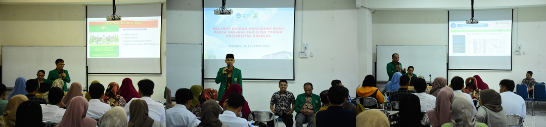 Padang (FTUA)- Fakultas Teknik adakan kegiatan Bimbingan Aktivitas Kemahasiswaan dalam Tradisi Ilmiah (BAKTI) untuk mahasiswa baru Program Pascasarjana untuk Prodi Magister dan Doktor tahun 2023 pada hari Sabtu (26/08/2023) di ruangan RSTA 1 & 2 Departemen Teknik Industri mengusung tema “Akselerasi Generasi Emas dengan Karakter Berintegritas Melalui Kolaborasi Inovatif Berkelanjutan”.