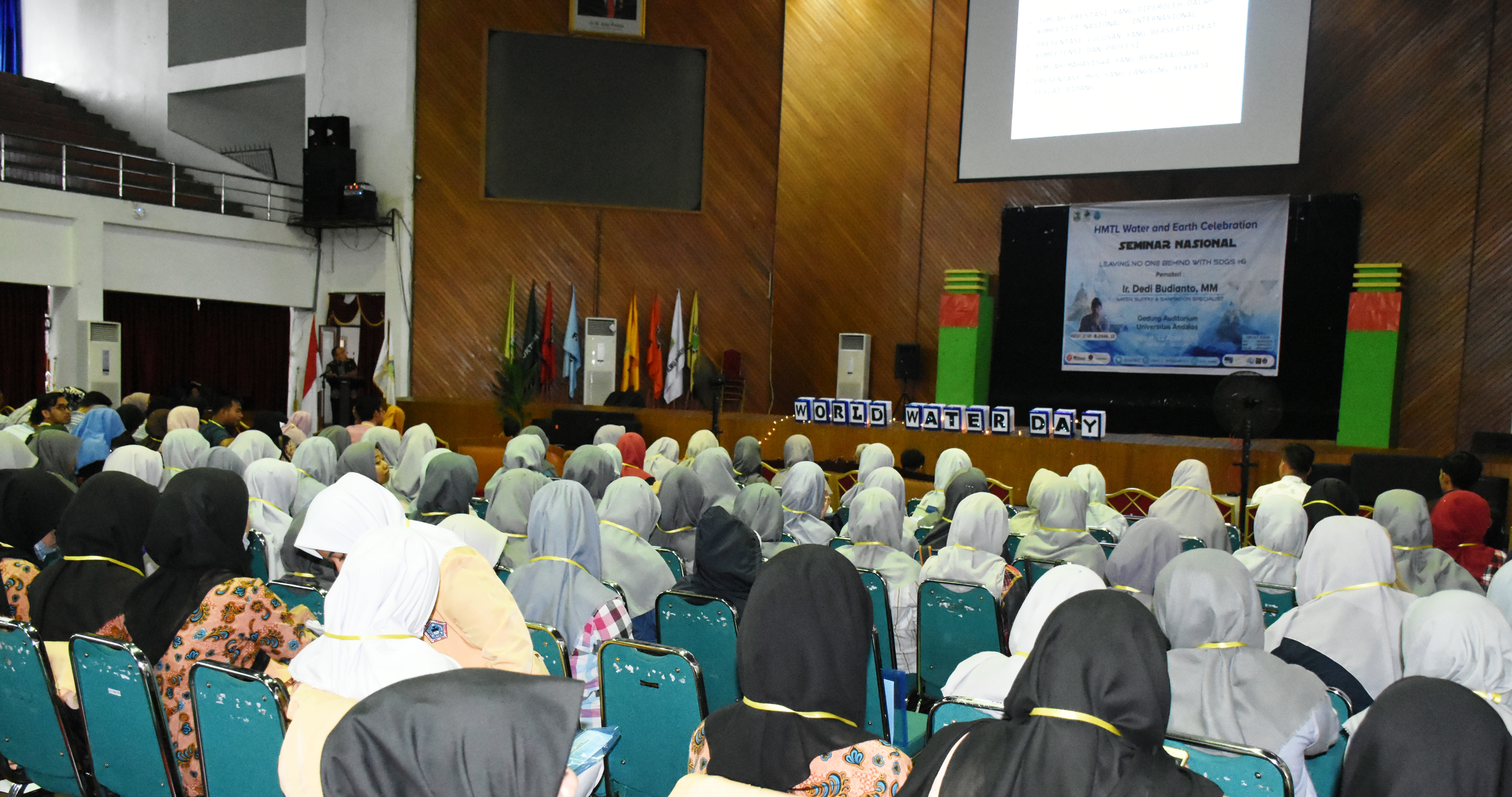 Padang - Himpunan Mahasiswa Teknik Lingkungan Fakultas Teknik Universitas Andalas mengadakan acara Seminar Nasional dalam rangka memperingati hari air dengan menghadirkan Narasumber Ir. Dedi Budianto, MM tema “Leaving No One Behind With Sustainable Development Goals #6”. Kegiatan ini berlangsung pada hari Jum’at (12/4) di Gedung Auditorium Universitas Andalas.