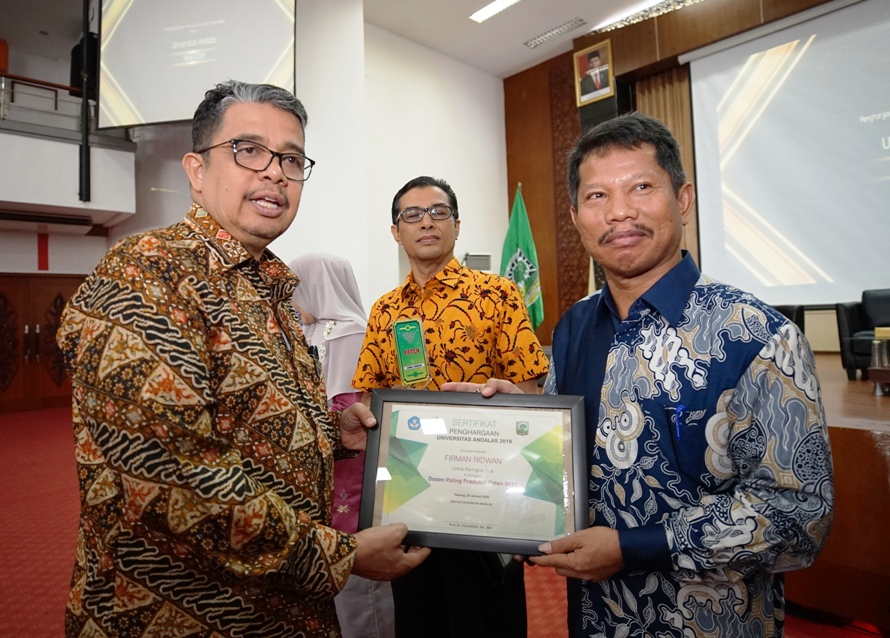 Padang - Fakultas Teknik Universitas Andalas meraih penghargaan Kategori Fakultas dengan jumlah Buku dan Paten terbanyak 2019. Penghargaan ini diterima langsung oleh Dekan Fakultas Teknik Universitas Andalas (Prof. Dr. Eng. Gunawarman, MT). Kegiatan ini diselenggarakan oleh Ketua Lembaga Penelitian dan Pengabdian kepada Masyarakat (LPPM) Universitas Andalas Dr. –Ing. Uyung Gatot Safrawi Dinata, MT di Gedung Convention Hall Universitas Andalas pada Rabu (29/1).