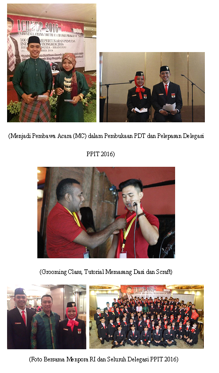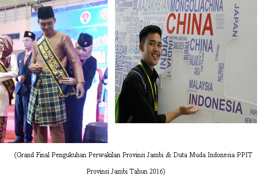 Menjadi perwakilan Provinsi Jambi merupakan suatu kebanggaan yang tidak terkira dan pernah terbayangkan dalam hidup saya. Bertemu dengan 33 Duta Muda Indonesia dari seluruh tanah air dan dipersatukan dalam kontingen Indonesia merupakan suatu pencapaian yang sangat berharga dalam hidup saya pada tahun 2016. Membawa nama Indonesia tidak hanya menjadi beban tapi menjadi rasa tanggung jawab yang besar atas nama tugas negara yang harus kami laksanakan demi menjaga nama baik Indonesia. Kesempatan menjadi Duta Muda Indonesia utusan Provinsi Jambi bukanlah sesuatu yang mudah untuk saya wujudkan Maret 2016 merupakan saksi saat saya harus berjuang bersama 80 peserta lain merebutkan satu posisi untuk mewakili Provinsi Jambi hingga keberuntungan berpihak kepada saya untuk menjadi utusan Provinsi Jambi pada PPAN tahun 2016.