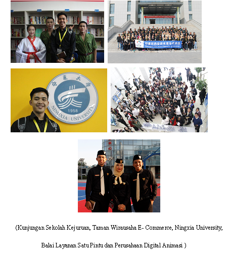 Kegiatan yang dilakukan di Provinsi Ningxia seperti berkunjung ke Museum Kuno Ningxia, Percontohan Wirausaha Kaum Muda di Taman Pertanian Xiongying, Taman Wirausaha E-Commerce Ningxia - Zhejiang, Kuliah Umum “Sabuk Ekonomi Jalur Sutera”, berkunjung ke Ningxia University National Science Park, Taman Industri Produk Halal Tiongkok, Museum Islam China, Desa Baru Muslim Imigran Etnis Hui Tiongkok, Museum Kedokteran Etnis Hui, Balai Kemasyarakatan yang menyediakan layanan satu pintu, PT. Iptek Digital Sheng Tian Cai Ningxia, yaitu perusahaan digital animasi. Pada malam terakhir diadakan gala dinner dan penampilan kebudayaan Indonesia kepada tamu undangan.